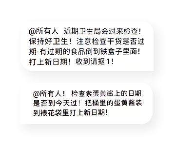 Hen håller upp telefonen och visar meddelandena hen och kollegorna fått från chefen i den kinesiska appen Wechat. Hen berättar att det fuskas med maten och märkningen.