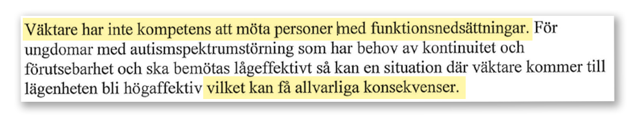 Väktarlösningen kan till och med vara ett brott mot LSS-lagen, enligt Ivo. I stället borde cheferna ha tagit tag i andra brister som funnits långt innan väktarna kallades in.