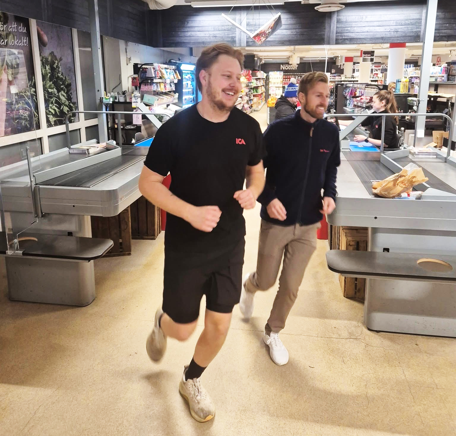 – Ja, jag körde kundvarvet som är 80 meter. Första halvan av loppet var viktigast, den gjorde jag när butiken var stängd. Då kunde jag springa fortare. Jag svettades men höll mig medvetet i mitten av gången.