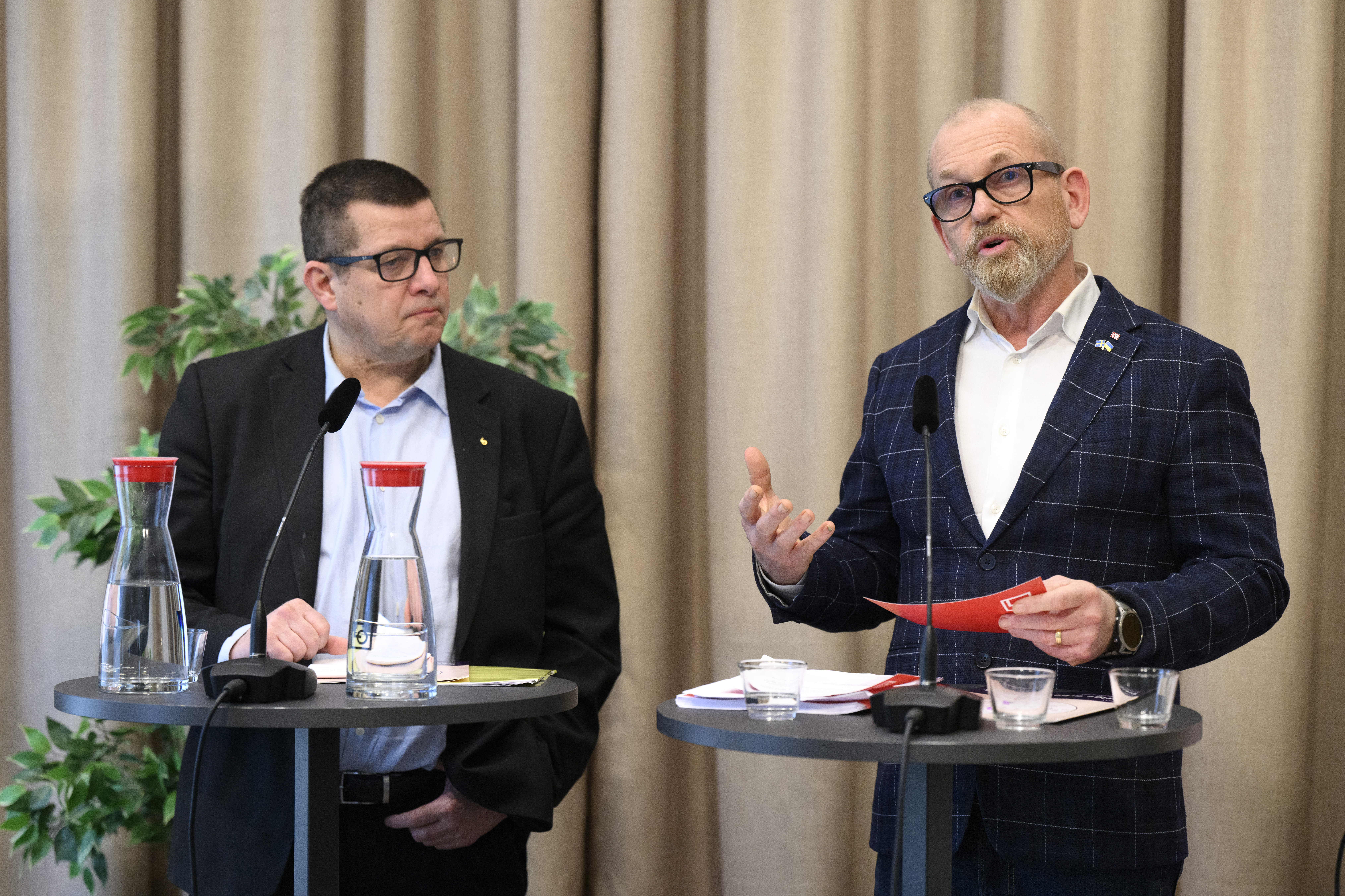 Tufft läge för LO:s ordförande Johan Lindholm (höger) och Veli-Pekka Säikkälä (vänster).