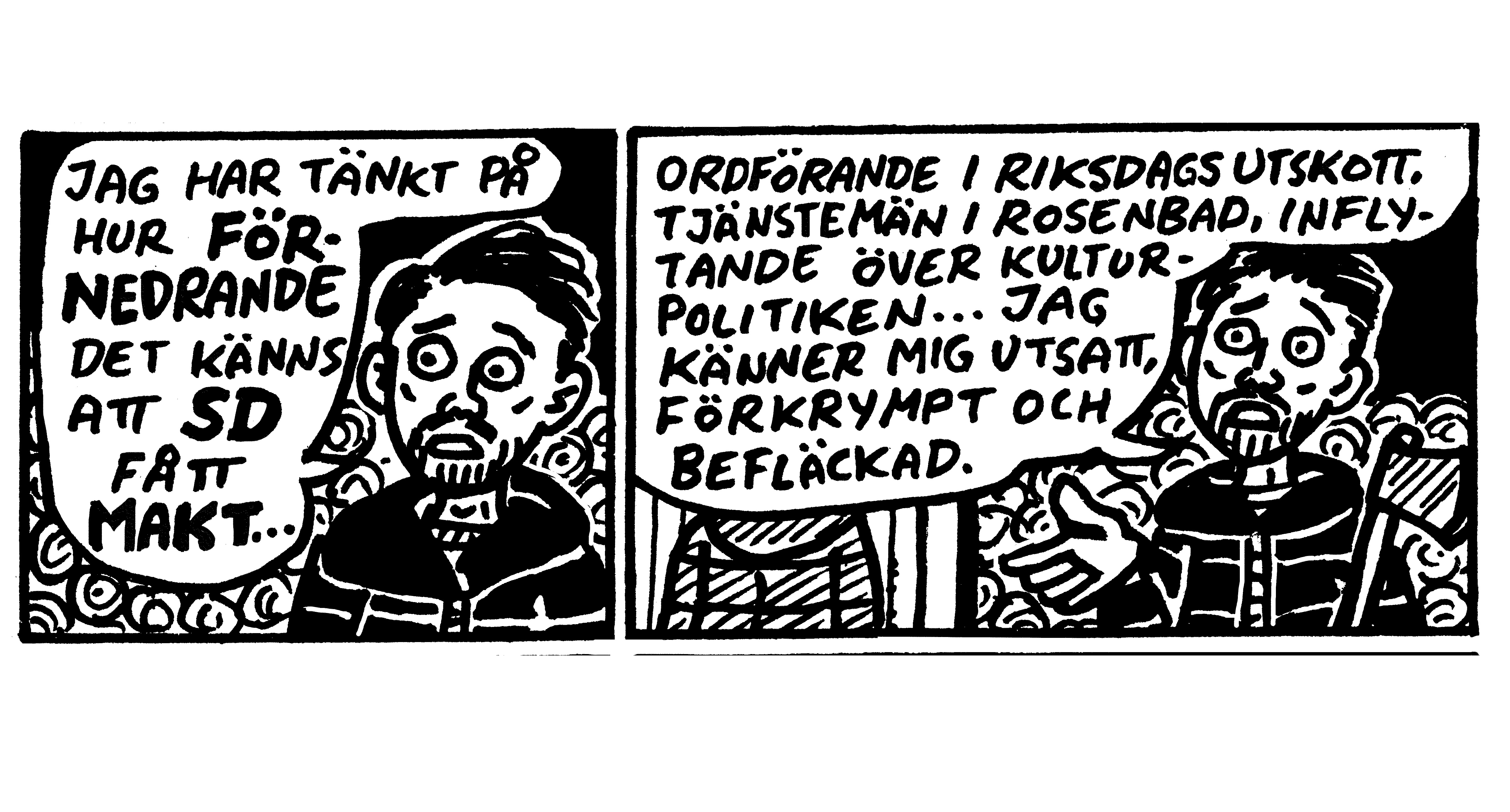 Kultur Serietecknaren Mats Jonsson samlar tankarna efter Agendas partiledardebatt där Jimmie Åkesson pratade om en Skamlös vinhora.