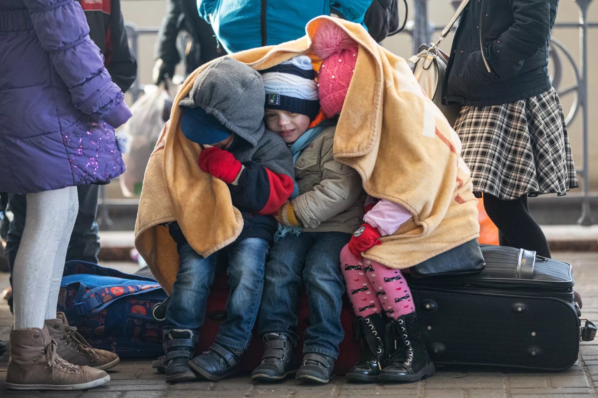 Ukrainakriget Femåriga Timosha Kim och de andra ukrainska flyktingarna tas emot när de kliver …