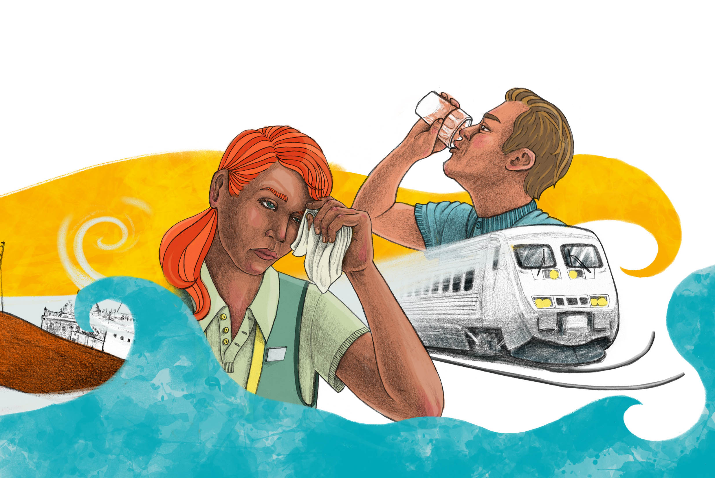 Klimatkris Över 40 grader i postbilar, tåg med varma och griniga resenärer, utomhusarbete i…